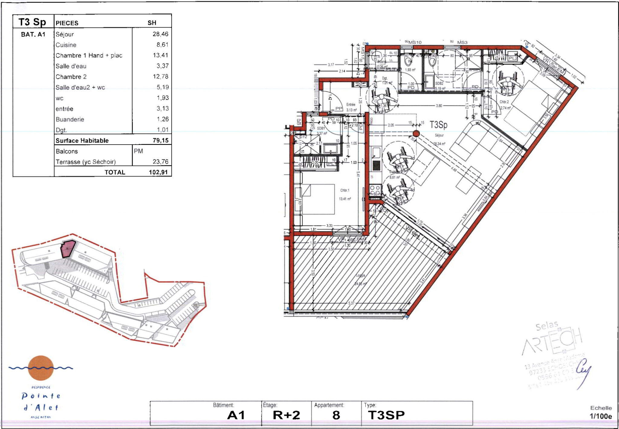 Appartement climatisés, avec cuisine aménagée et semi-équipée, placards aménagés, douches italiennes, buanderie, belles prestations