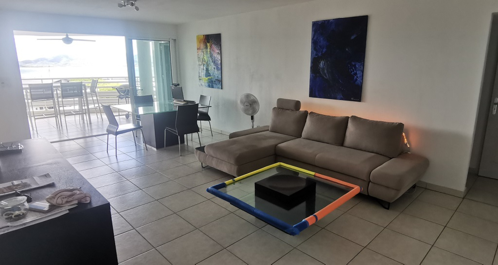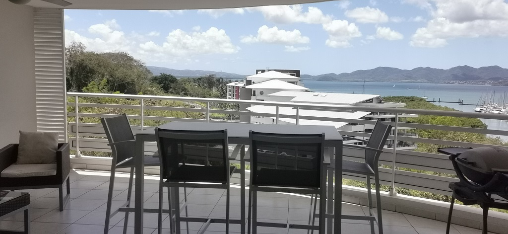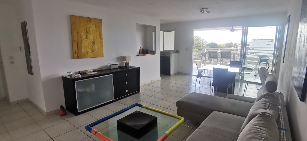 Grand séjour, terrasse ave vue mer panoramique, cuisine aménagée, cellier, salle d'eau à double vasque et buanderie ventilée, 2 chambres climatisées avec placard, WC indépenant avec lave main, chambre parentale climatisée avec placard et salle de bain privative.