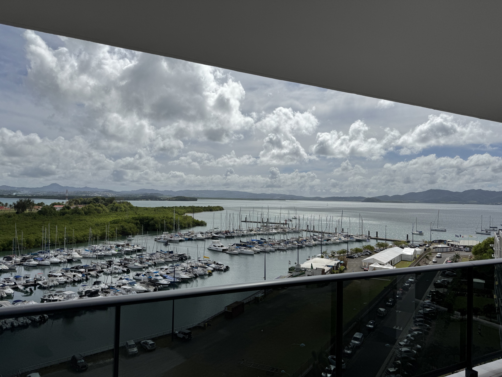 Dans une résidence neuve de grand standing, spacieux appartement T3 situé au 6ème étage, disposant d'une splendide vue mer et marina, composé d'un séjour avec cuisine aménagée et très bien équipée, deux chambres climatisées avec placard aménagé, deux salle d'eau dont une avec WC, un WC séparé avec lave main, une terrasse couverte, une buanderie, ainsi que 2 places de parking dont une couverte.