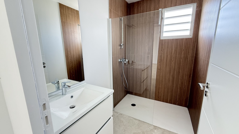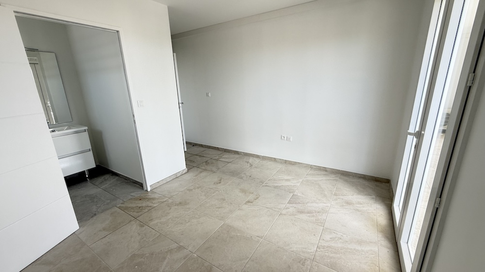 Vaste séjour, avec coin cuisine aménagée, espage de rangement, WC indépendant avec lave mains, 2 chambres climatisées dont une avec sa salle d'eau privative, une autre salle d'eau, une terrasse avec vue mer, une buanderie, 2 places de parking dont une en sous sol, et une cave.