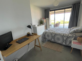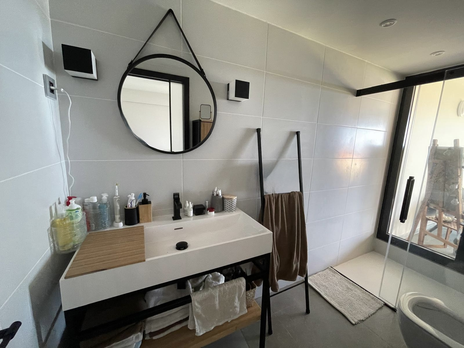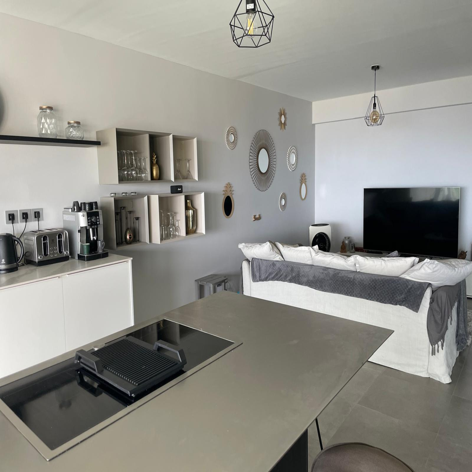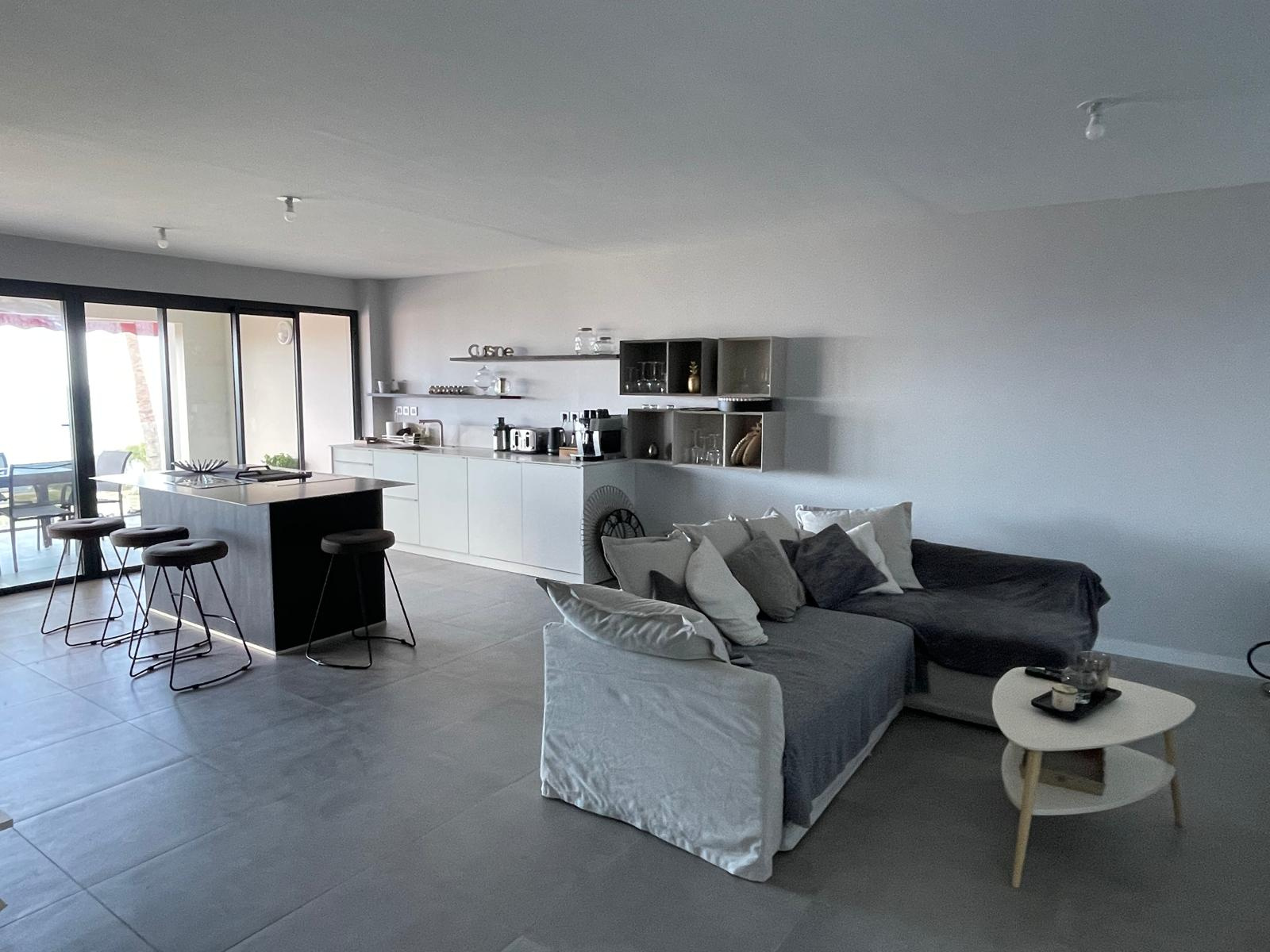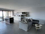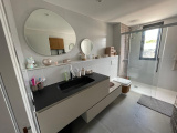 Cet appartement, situé au premier étage, est composé d'un grand salon, une cuisine tout équipée et aménagée, une chambre parentale climatisée avec dressing et salle d'eau privative, plus 2 autres chambres climatisées et une seconde salle d'eau.