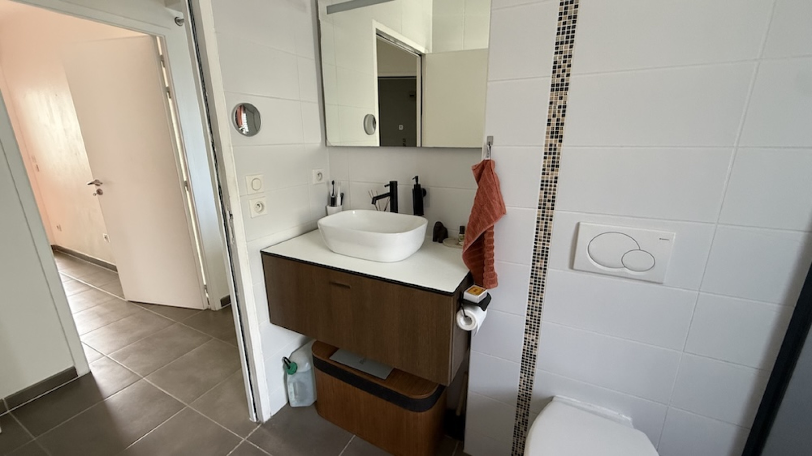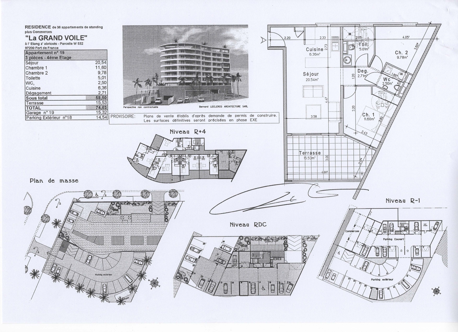 Cuisne entièrement aménagée, 2 chambres climatisées, salle d'eau avec WC + WC séparé avec lave mains, terrasse, parking en sous sol, parking extérieur.