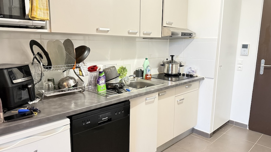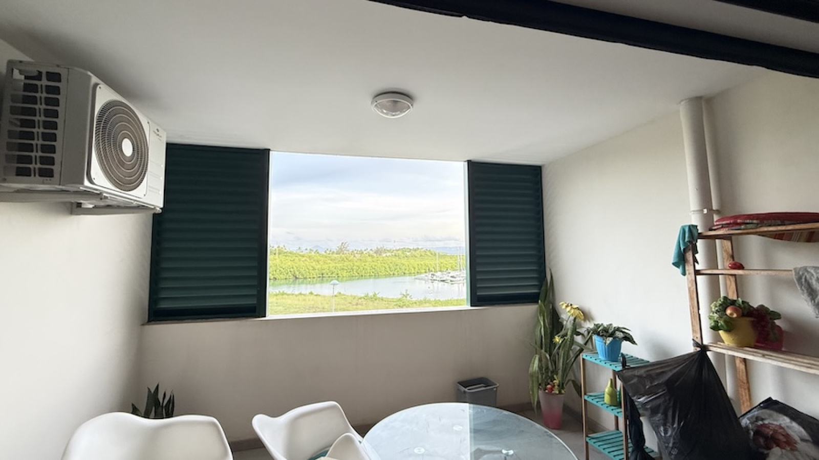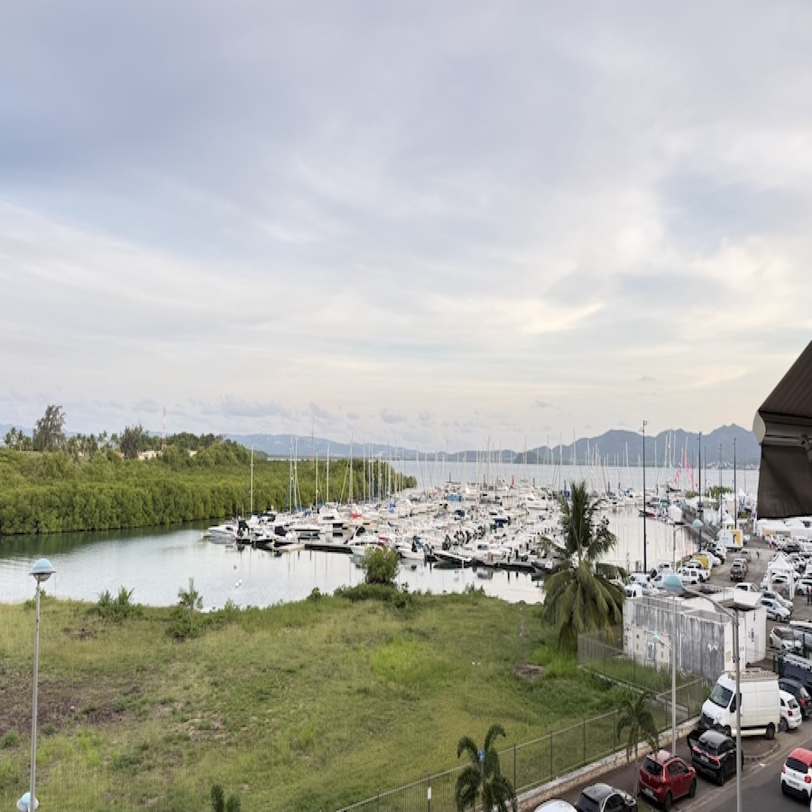 Sur la marina de l'Etang Zabricots, dans une résidence récente, studio en très bone état au 3ème étage climatisé, avec kitchenette (meubles, évier, plaque cuisson, hotte aspirante, réfrigérateur) avec vue sur la mer et la Marina.